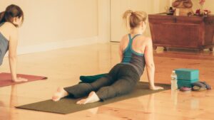 As your center of gravity shifts, reduce the intensity of stretches that challenge your balance, or use props like chairs, walls, or cushions for support. Be mindful of your growing belly and give it space during forward bends and twists. Avoid deep twisting motions that compress your abdomen, opting instead for open twists that rotate your upper body while keeping your hips stable.